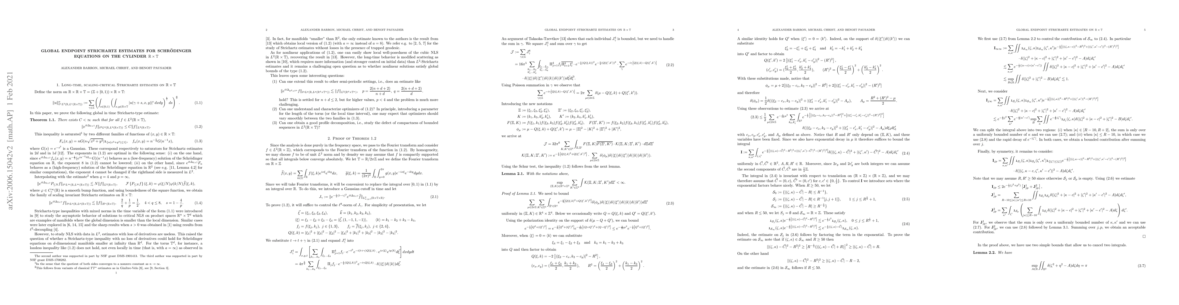 Summary: This paper establishes a sharp global Strichartz estimate for the Schrödinger equation on the cylinder $\mathbb{R}\times\mathbb{T}$, providing an essential tool for analyzing the equation's solution behavior.