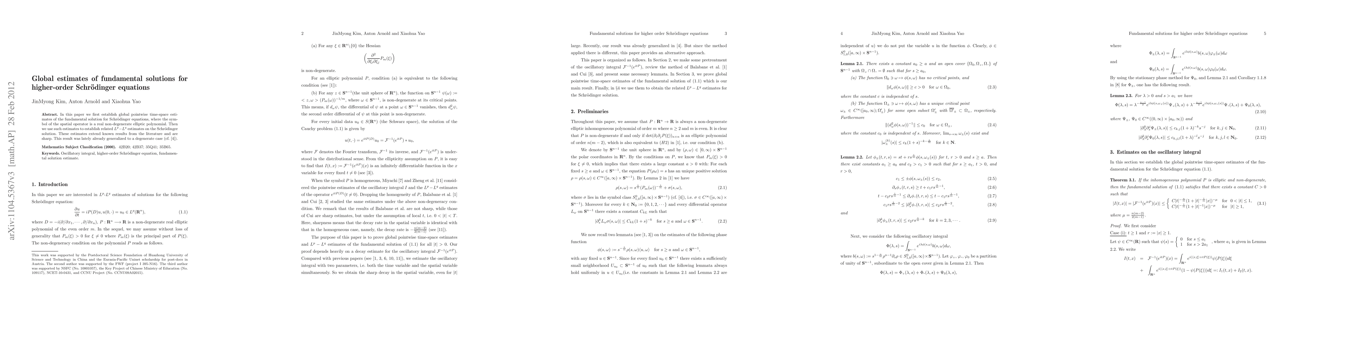 This paper establishes global estimates for the fundamental solution of higher-order Schr"odinger equations, extending previous results and providing sharp Lp-Lq bounds on the solution.