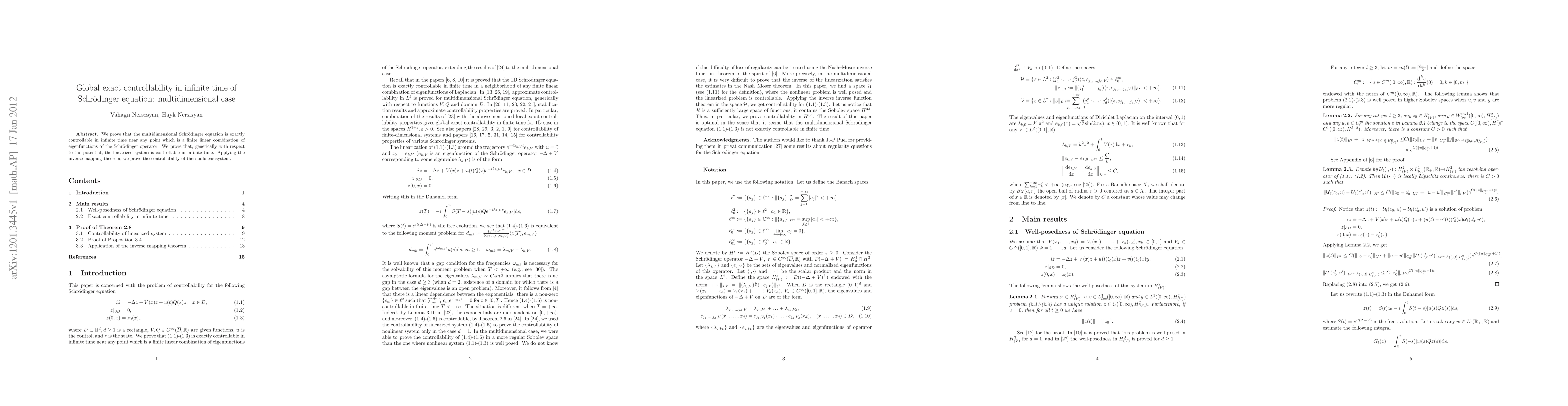 The multidimensional Schr"odinger equation is exactly controllable in infinite time near points that are finite linear combinations of its eigenfunctions. This result generalizes to the nonlinear system using the inverse mapping theorem.