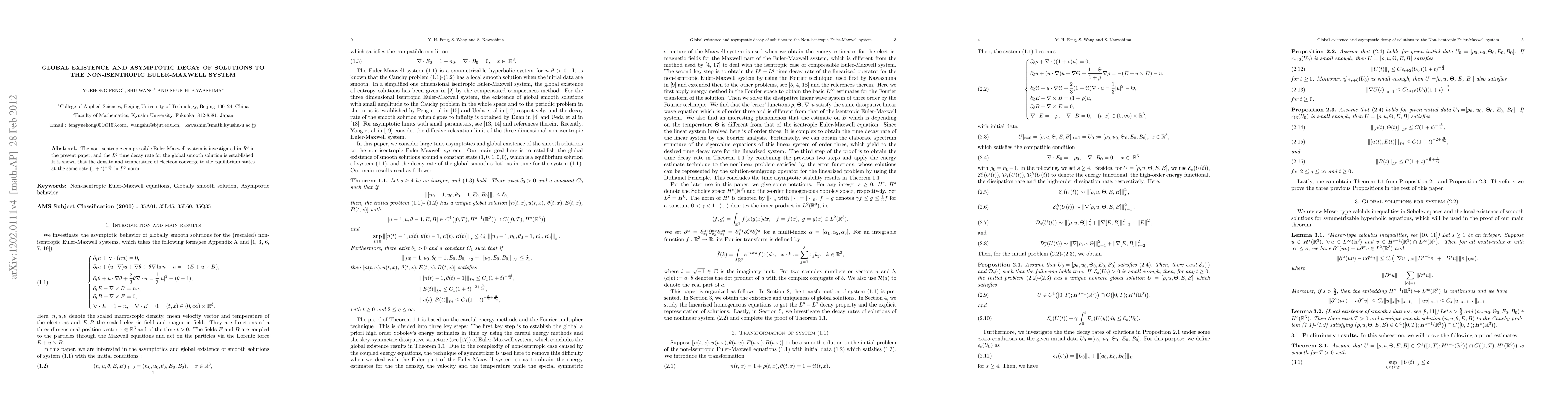 This paper investigates the global existence and asymptotic decay of solutions to the non-isentropic Euler-Maxwell system in $R^3$, establishing an $L^q$ time decay rate. The density and temperature of electrons converge to equilibrium states with a $(1+t)^{-11/4}$ decay rate in $L^q$ norm.