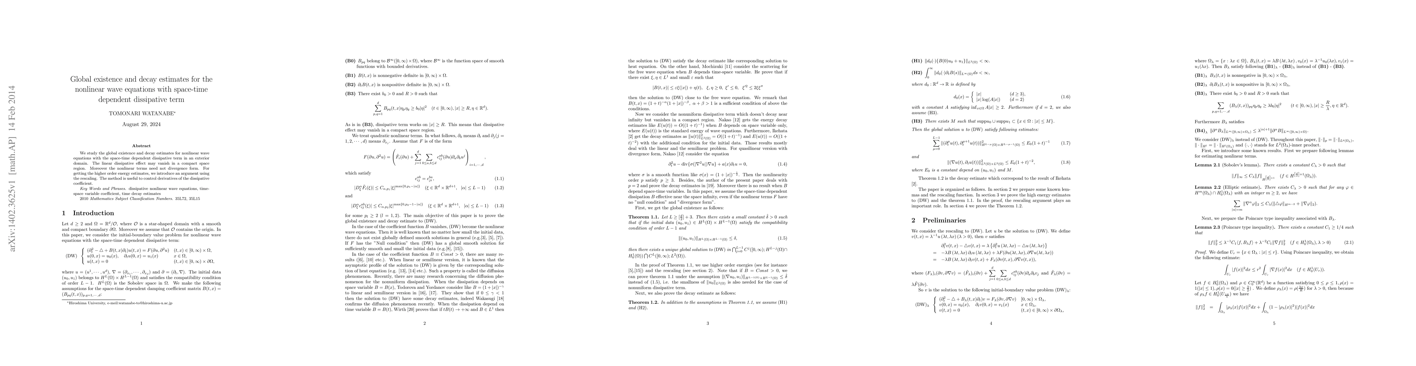 This paper investigates global existence and decay estimates for nonlinear wave equations featuring a space-time dependent dissipative term in an exterior domain. The authors utilize rescaling arguments to achieve higher order energy estimates and control derivatives of the dissipative coefficient, even when the linear dissipative effect vanishes in some regions.