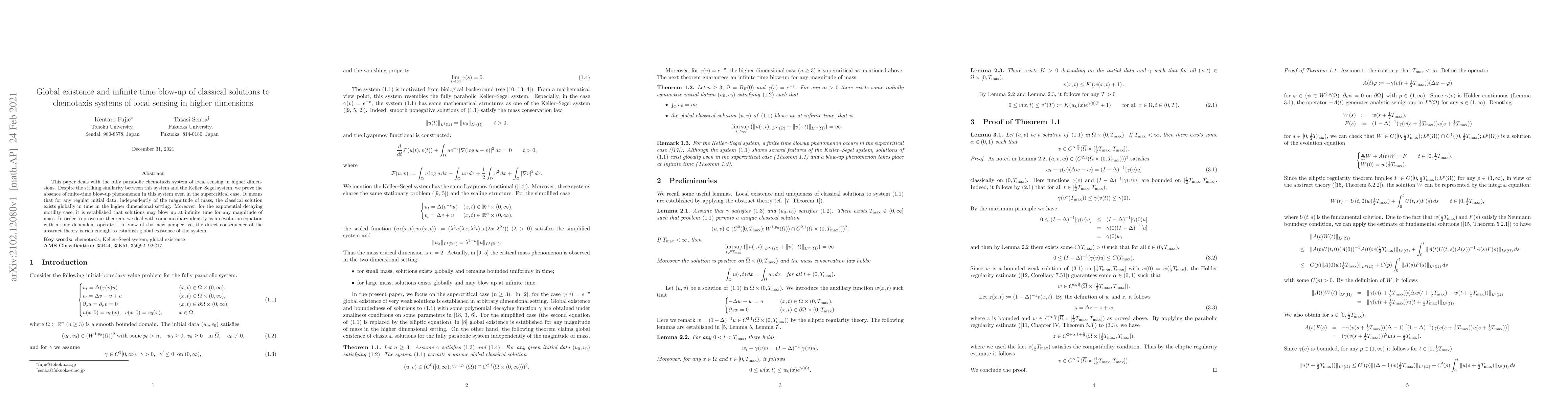 This paper proves that solutions to a chemotaxis system in higher dimensions do not blow up in finite time for regular initial data, but may blow up at infinite time under certain conditions.
