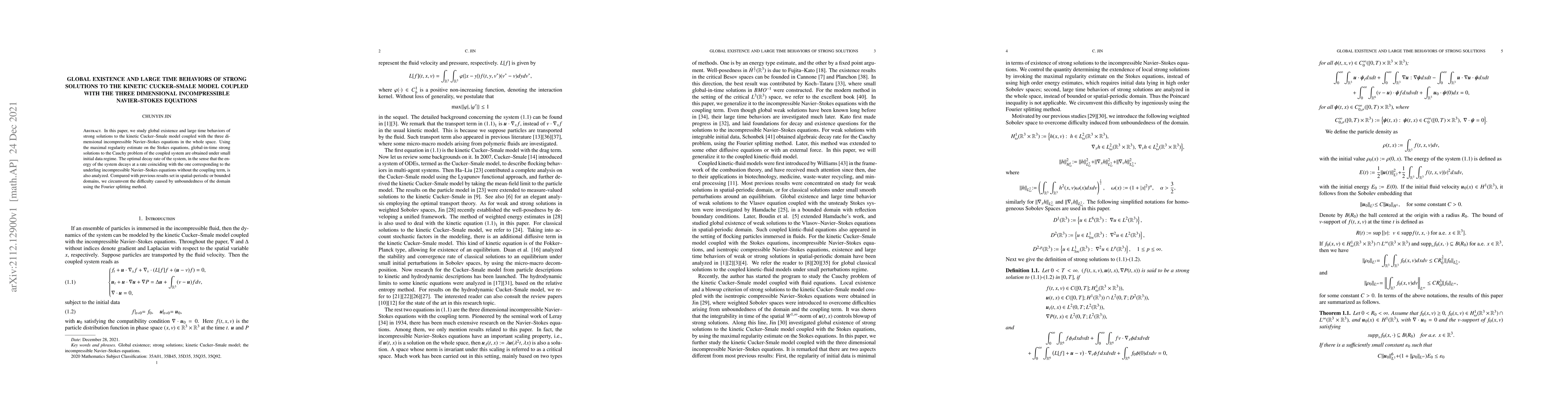 This paper investigates global existence and large time behaviors of strong solutions for a coupled kinetic Cucker-Smale model and three-dimensional incompressible Navier-Stokes equations in whole space. It utilizes maximal regularity estimates and Fourier splitting methods to achieve results under small initial data conditions.