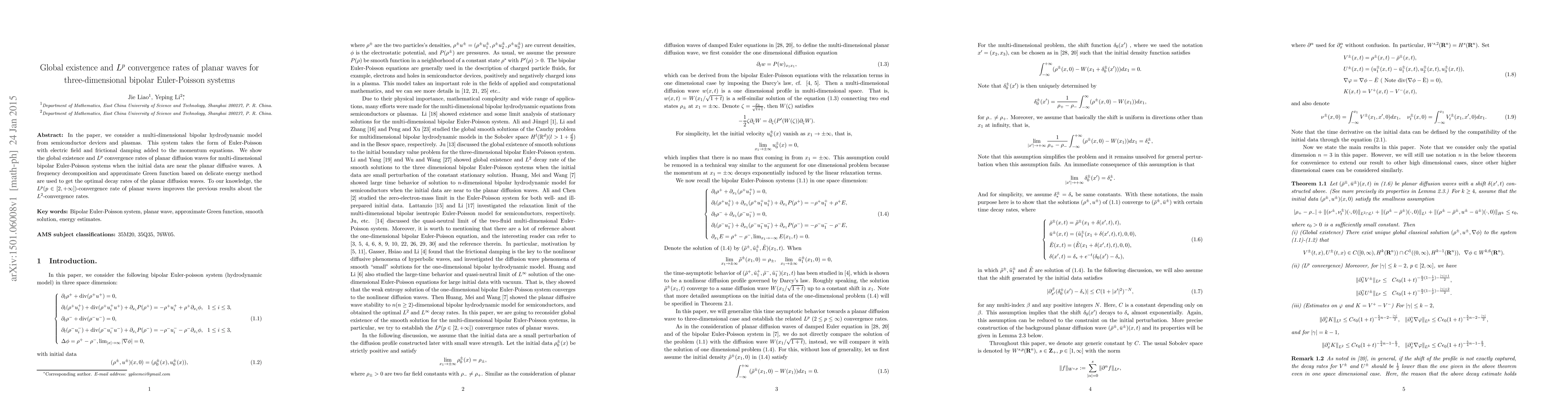 This paper establishes global existence and $L^{p}$ convergence rates for planar waves in three-dimensional bipolar Euler-Poisson systems, improving previous $L^2$-convergence results. The analysis employs a frequency decomposition and an approximate Green function with a delicate energy method to achieve optimal decay rates.