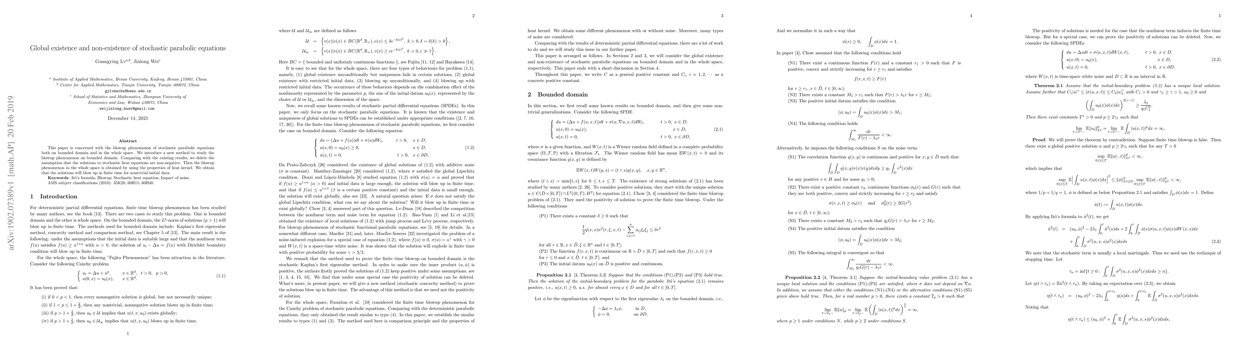 This paper is concerned with the blowup phenomenon of stochastic parabolic equations both on bounded domain and in the whole space. We introduce a new method to study the blowup phenomenon on bounded domain. Comparing with the existing results, we delete the assumption that the solutions to stochastic heat equations are non-negative. Then the blowup phenomenon in the whole space is obtained by using the properties of heat kernel. We obtain that the solutions will blow up in finite time for nontrivial initial data.