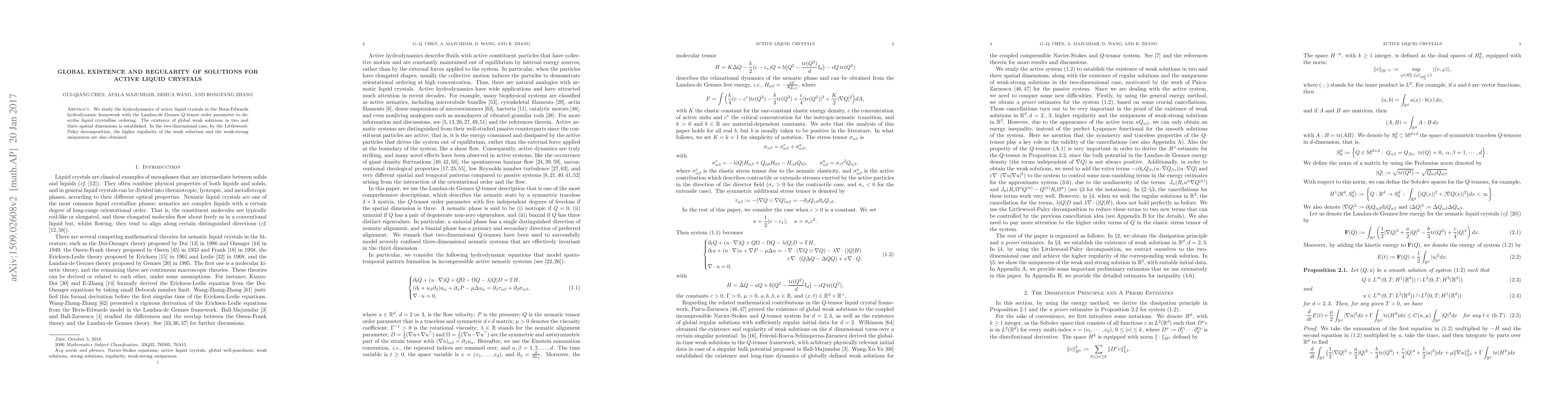 In this paper, we study the active hydrodynamics, described in the Q-tensor liquid crystal framework. We prove the existence of global weak solutions in dimension two and three, with suitable initial datas. By using Littlewood-Paley decomposition, we also get the higher regularity of the weak solutions and the uniqueness of weak-strong solutions in dimension two.