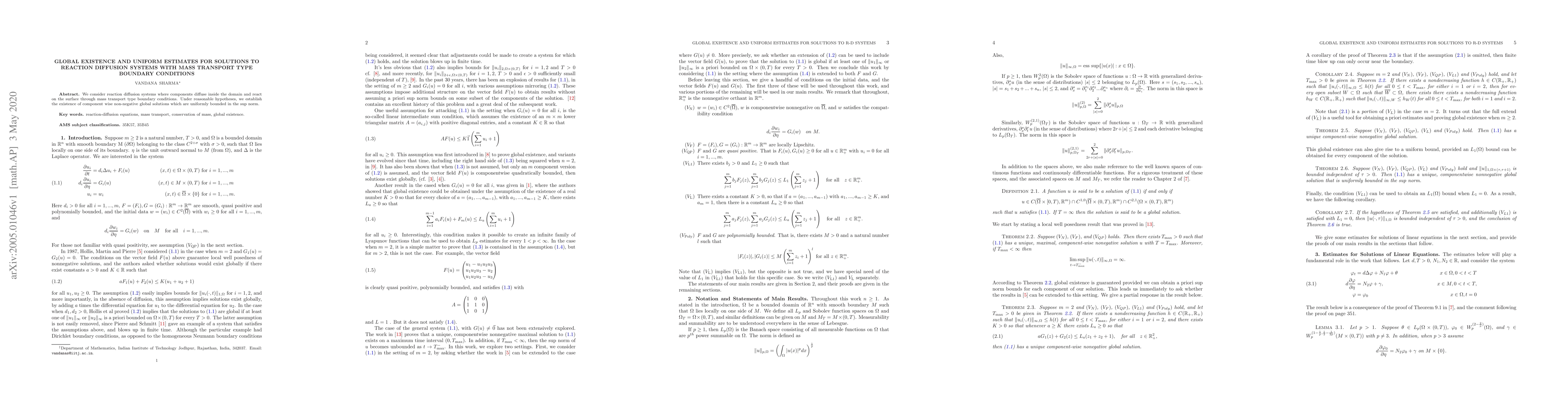 This paper investigates reaction diffusion systems with mass transport type boundary conditions, proving the global existence and uniform boundedness of non-negative solutions under reasonable assumptions. The solutions are shown to be uniformly bounded in the sup norm.
