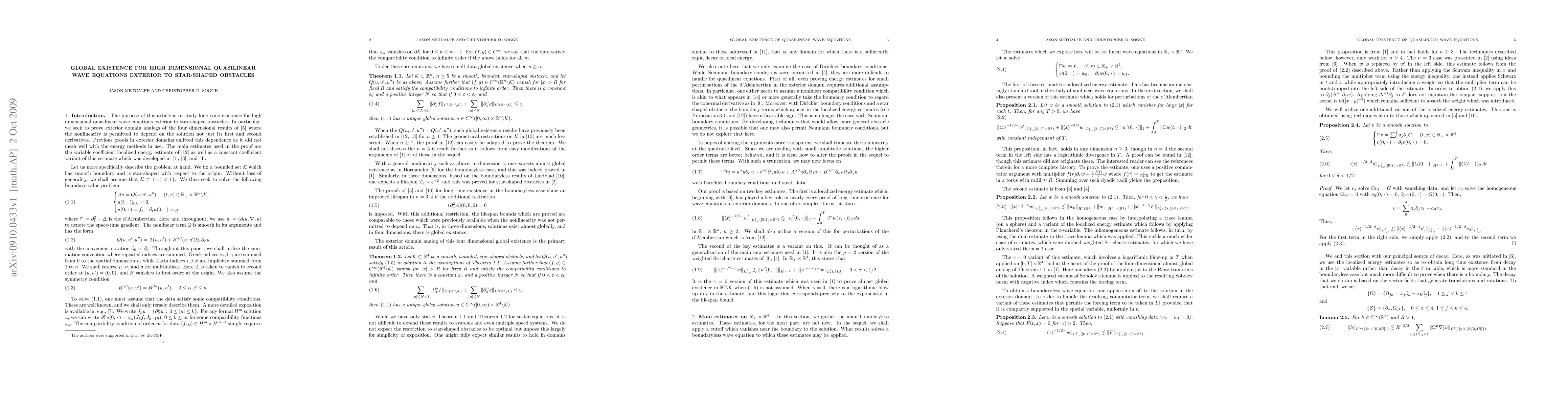 This paper investigates the global existence of solutions for high dimensional quasilinear wave equations outside star-shaped obstacles, extending four-dimensional results by Hörmander to allow nonlinearity dependent on the solution's higher derivatives, overcoming limitations of previous methods in exterior domains.
