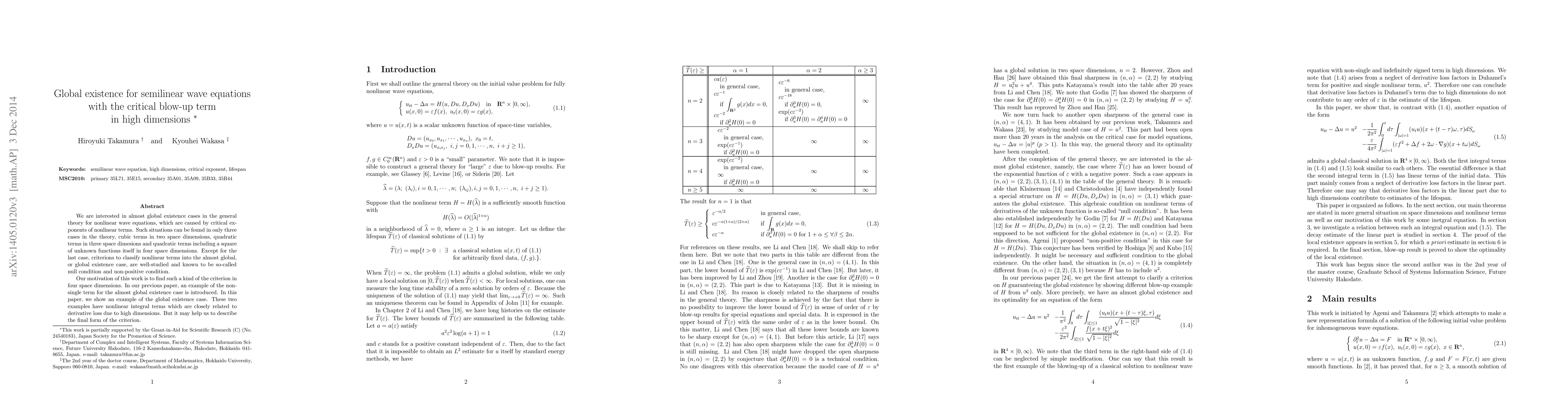 This paper investigates the almost global existence of solutions to semilinear wave equations with critical nonlinear terms in high dimensions, focusing on the case of quadratic terms in four dimensions. It aims to establish a criterion for global existence, building on previous examples of almost global existence and highlighting the role of nonlinear integral terms related to derivative loss in high dimensions.