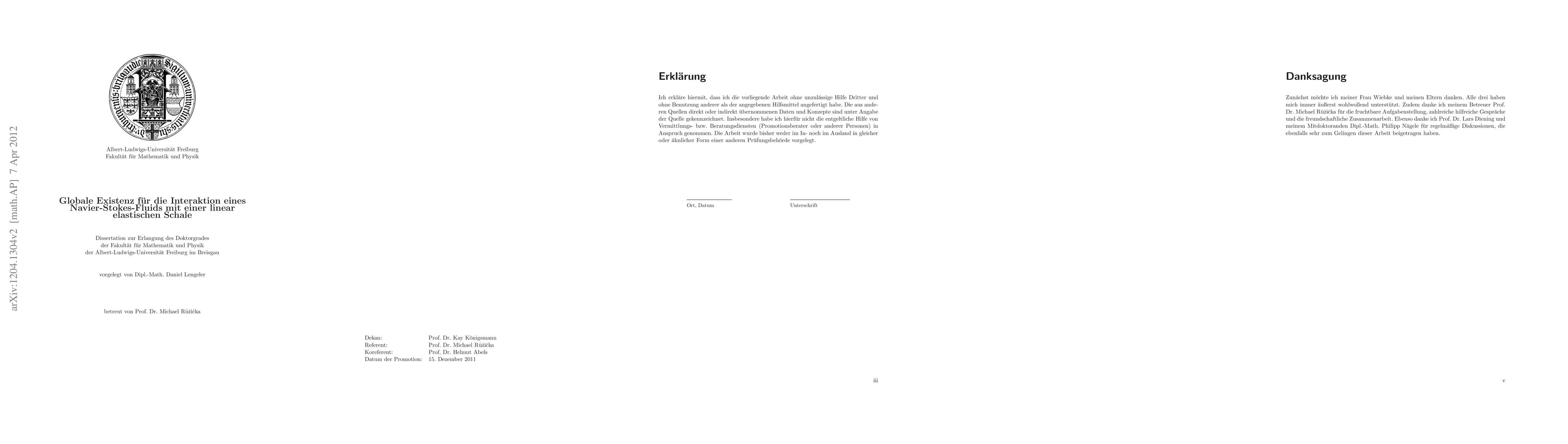 In my PhD thesis I show the existence of global-in-time weak solutions for a Navier-Stokes fluid interacting with a linearly elastic shell of Koiter type. This is achieved by the introduction of a new method for showing the compactness of bounded sequences of approximate weak solutions. This method might be of general interest in the study of fluid dynamical problems involving a free boundary. There is no damping term involved in the shell equations.