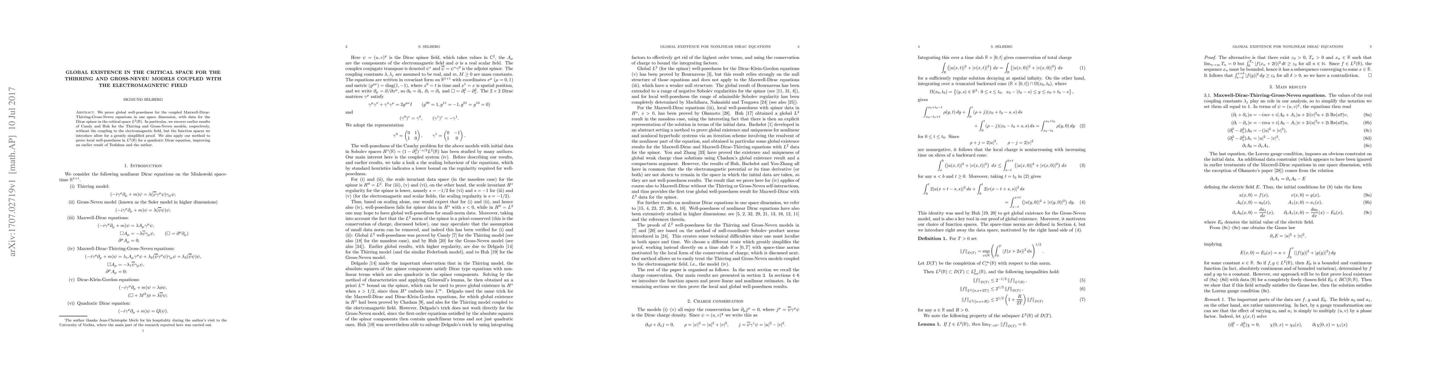 We prove global well-posedness for the coupled Maxwell-Dirac-Thirring-Gross-Neveu equations in one space dimension, with data for the Dirac spinor in the critical space $L^2(\R)$. In particular, we recover earlier results of Candy and Huh for the Thirring and Gross-Neveu models, respectively, without the coupling to the electromagnetic field, but the function spaces we introduce allow for a greatly simplified proof. We also apply our method to prove local well-posedness in $L^2(\R)$ for a quadratic Dirac equation, improving an earlier result of Tesfahun and the author.