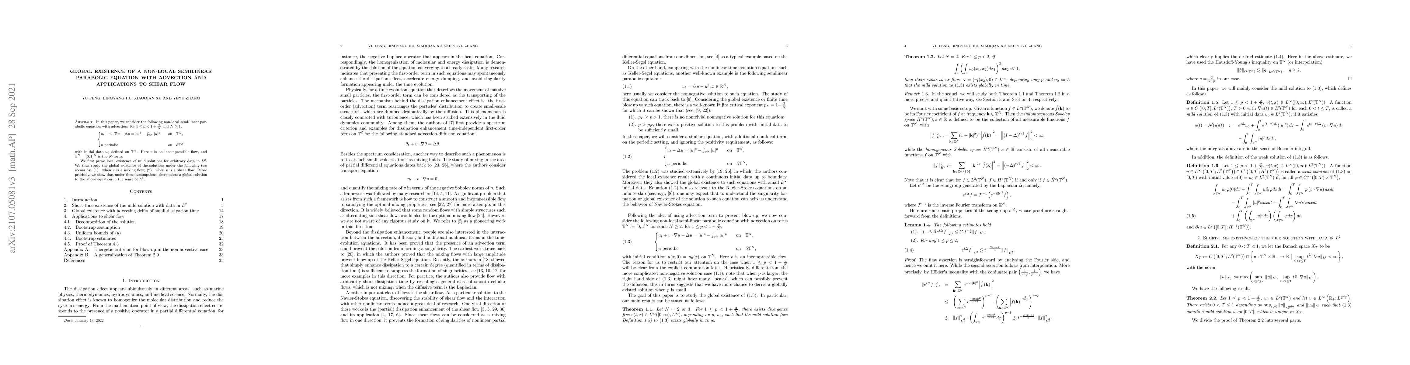 In this paper, we consider the following non-local semi-linear parabolic equation with advection: for $1 \le p<1+\frac{2}{N}$, \begin{equation*} \begin{cases} u_t+v \cdot \nabla u-\Delta u=|u|^p-\int_{\mathbb T^N} |u|^p \quad & \textrm{on} \quad \mathbb T^N, \\ \\ u \ \textrm{periodic} \quad & \textrm{on} \quad \partial \mathbb T^N \end{cases} \end{equation*} with initial data $u_0$ defined on $\mathbb T^N$. Here $v$ is an incompressible flow, and $\mathbb T^N=[0, 1]^N$ is the $N$-torus with $N$ being the dimension. We first prove the local existence of mild solutions to the above equation for arbitrary data in $L^2$. We then study the global existence of the solutions under the following two scenarios: (1). when $v$ is a mixing flow; (2). when $v$ is a shear flow. More precisely, we show that under these assumptions, there exists a global solution to the above equation in the sense of $L^2$.