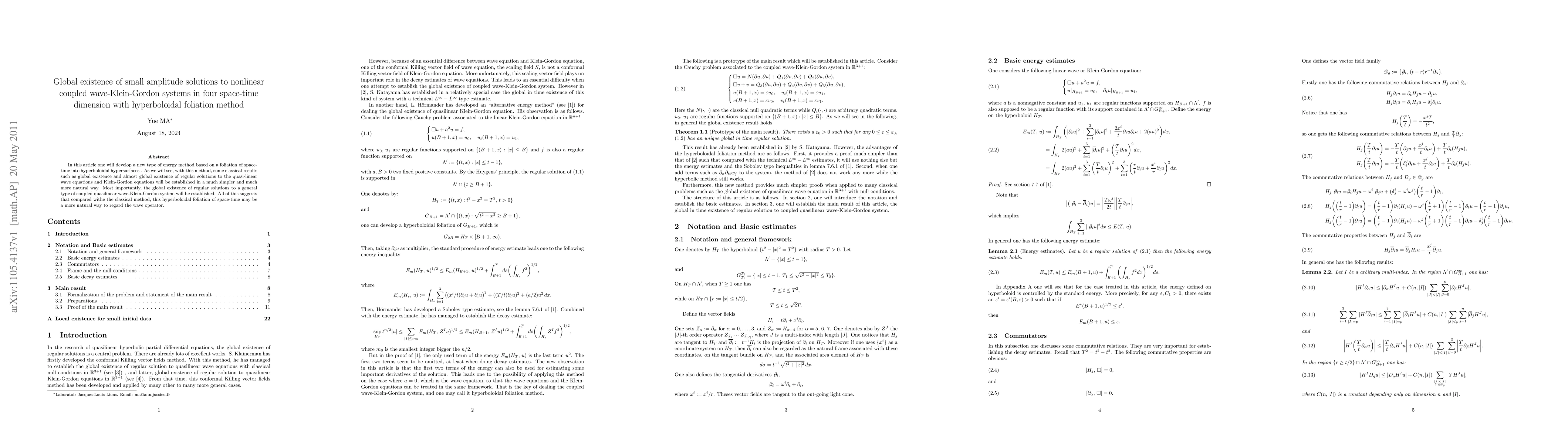 In this article one will develop a new type of energy method based on a foliation of spacetime into hyperboloidal hypersurfaces . As we will see, with this method, some classical results such as global existence and almost global existence of regular solutions to the quasi-linear wave equations and Klein-Gordon equations will be established in a much simpler and much more natural way. Most importantly, the global existence of regular solutions to a general type of coupled quasilinear wave-Klein-Gordon system will be established. All of this suggests that compared with the classical method, this hyperboloidal foliation of space-time may be a more natural way to regard the wave operator.