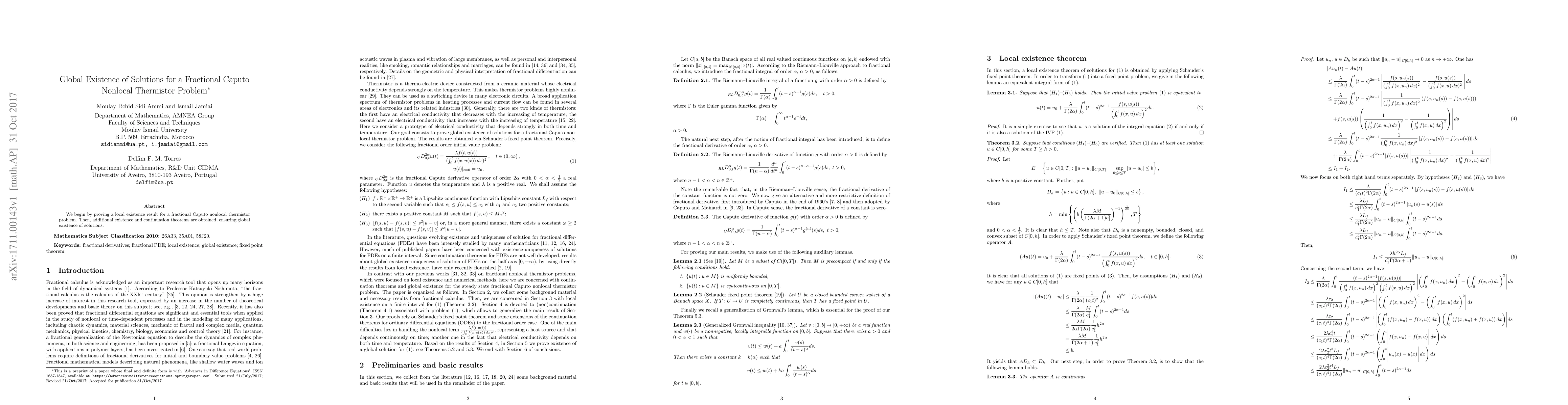 Summary: This paper proves local existence for a fractional Caputo nonlocal thermistor problem and subsequently establishes global existence through additional existence and continuation theorems.