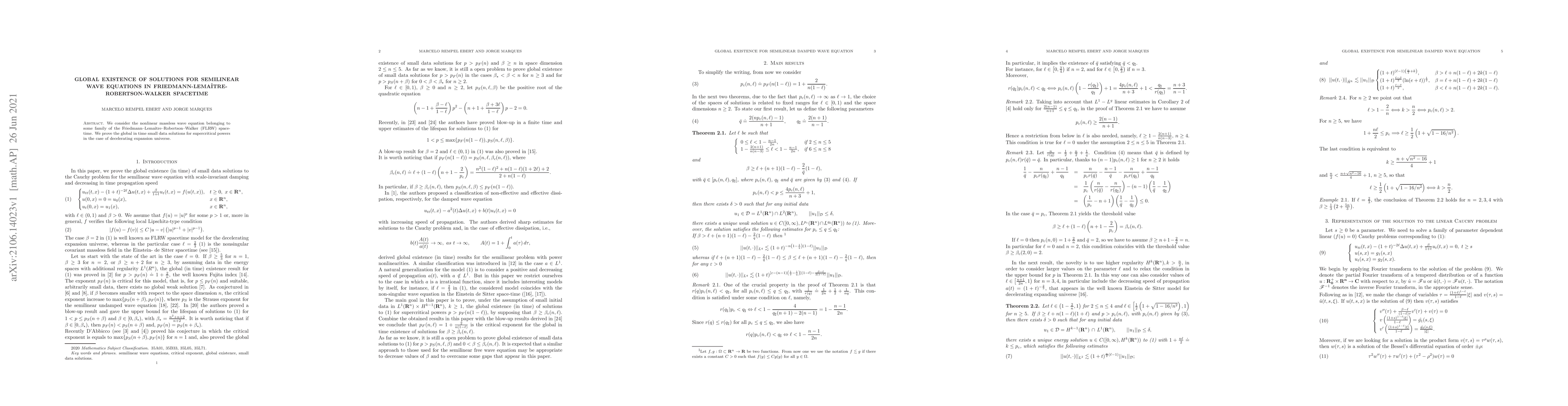 This paper proves the global existence of small data solutions for semilinear wave equations in FLRW spacetime, specifically addressing the supercritical case in a decelerating expansion universe. The study highlights the mathematical framework for understanding wave behavior in cosmological settings.