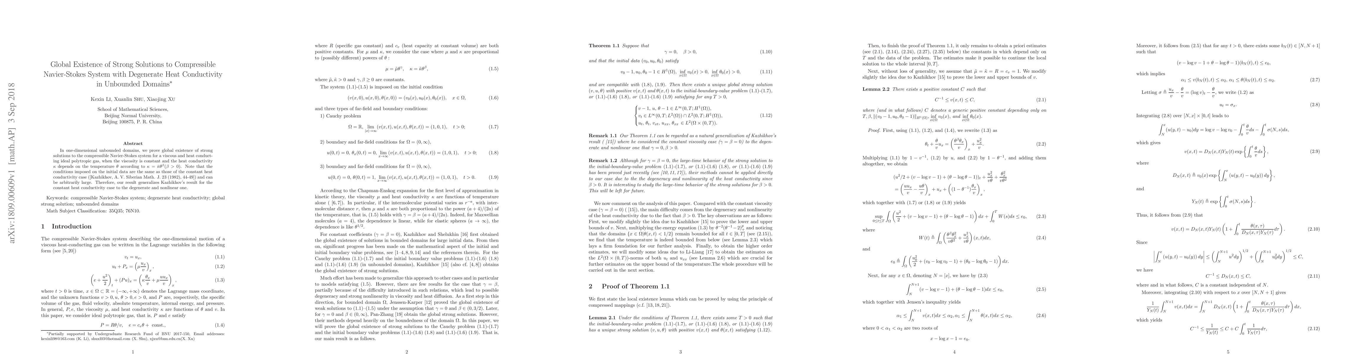This paper proves global existence of strong solutions for the compressible Navier-Stokes system in one-dimensional unbounded domains, considering a polytropic gas with variable heat conductivity dependent on temperature. The result generalizes previous findings for constant heat conductivity to the more complex degenerate case.