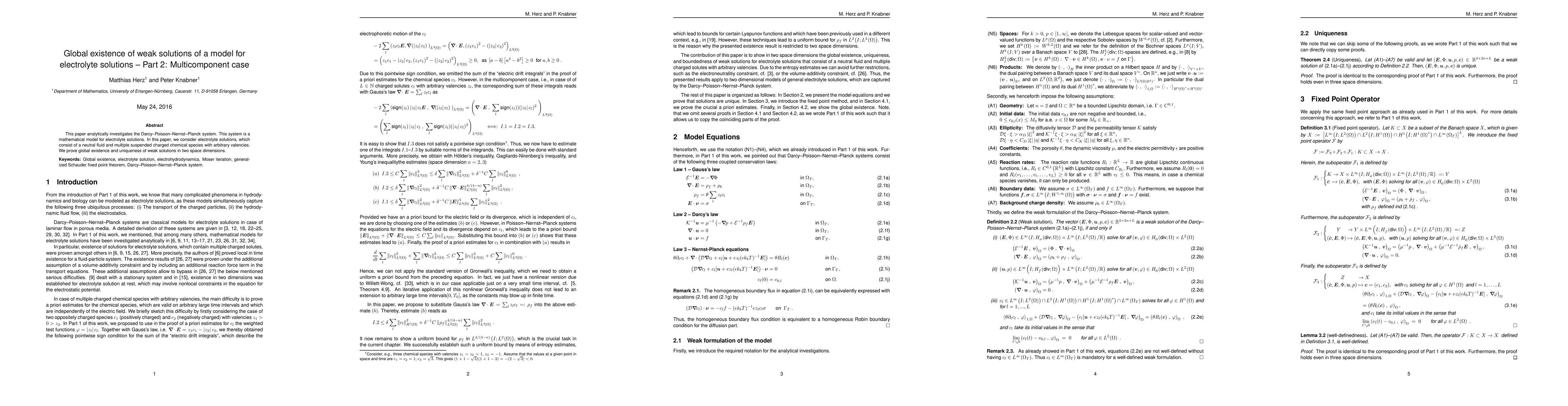 Researchers prove global existence of weak solutions for a mathematical model of multicomponent electrolyte solutions in two space dimensions, demonstrating the stability and predictability of such systems.