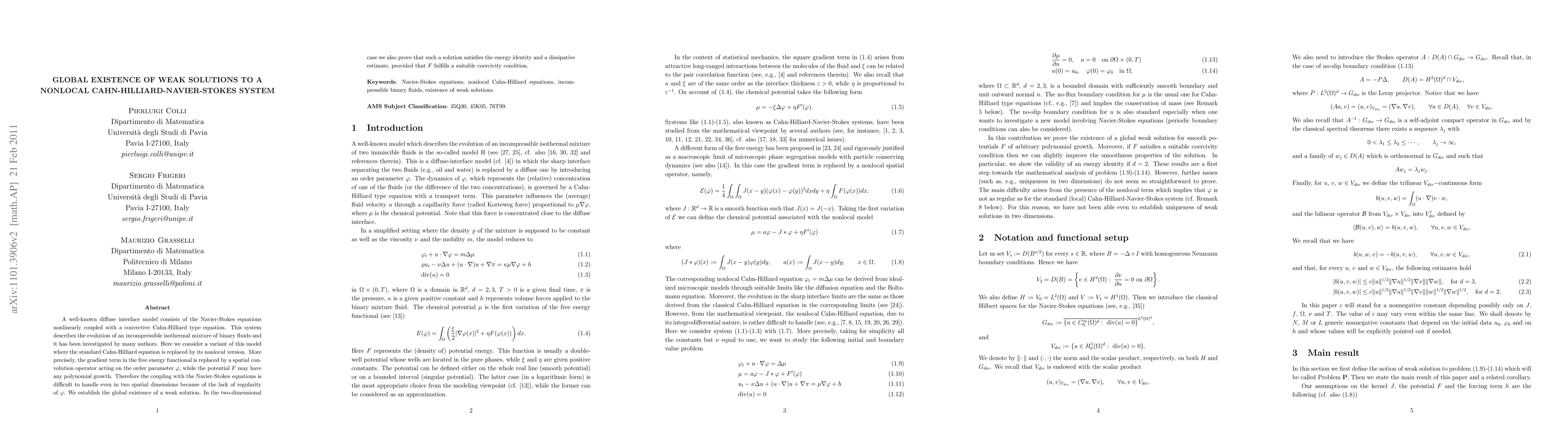 This paper establishes the global existence of weak solutions to a nonlocal Cahn-Hilliard-Navier-Stokes system, replacing the standard local Cahn-Hilliard equation with a nonlocal version. The authors provide a proof of the energy identity and dissipative estimate in the two-dimensional case under a suitable coercivity condition.