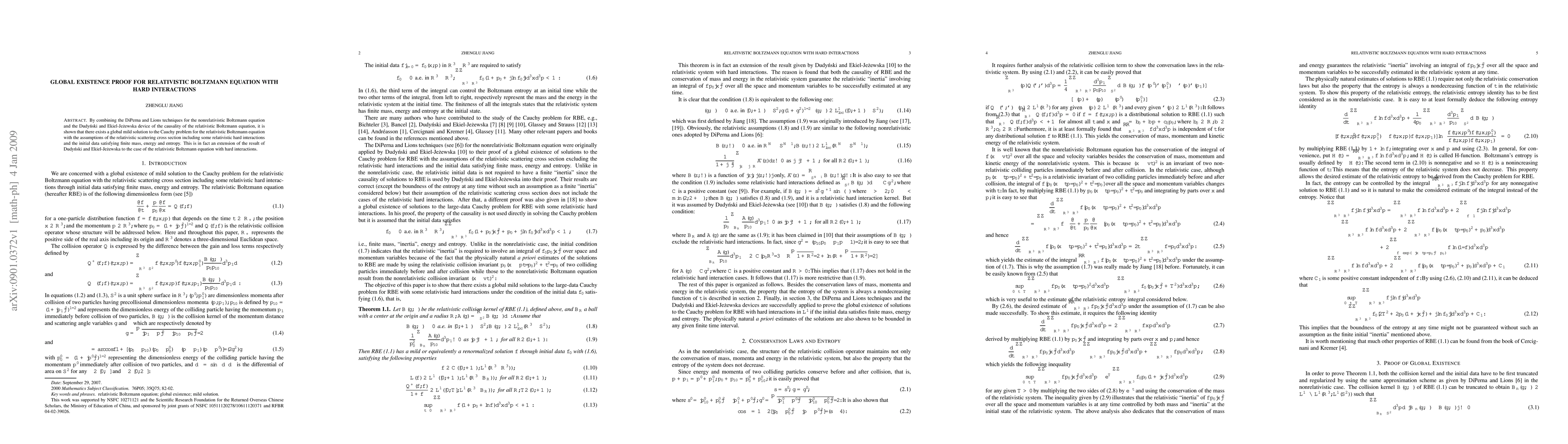 This paper proves the global existence of a mild solution for the relativistic Boltzmann equation under relativistic hard interactions, extending previous results by using a combination of DiPerna and Lions' techniques and the Dudyński and Ekiel-Jeżewska causality device. The solution is valid for initial data with finite mass, energy, and entropy.