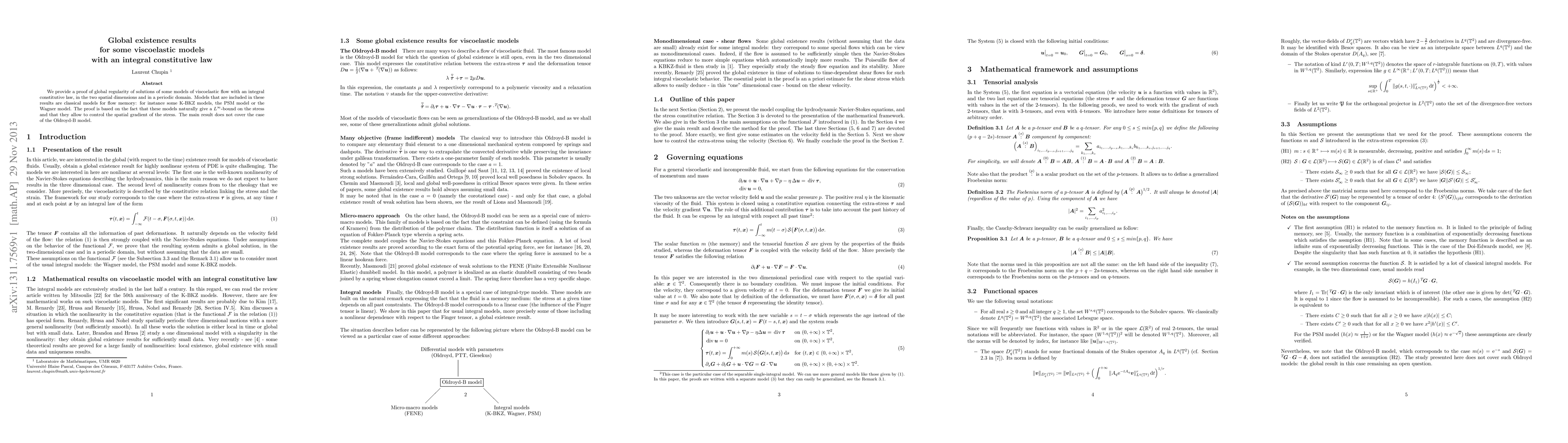 We provide a proof of global regularity of solutions of some models of viscoelastic flow with an integral constitutive law, in the two spatial dimensions and in a periodic domain. Models that are included in these results are classical models for flow memory: for instance some K-BKZ models, the PSM model or the Wagner model. The proof is based on the fact that these models naturally give a $L^\infty$-bound on the stress and that they allow to control the spatial gradient of the stress. The main result does not cover the case of the Oldroyd-B model.