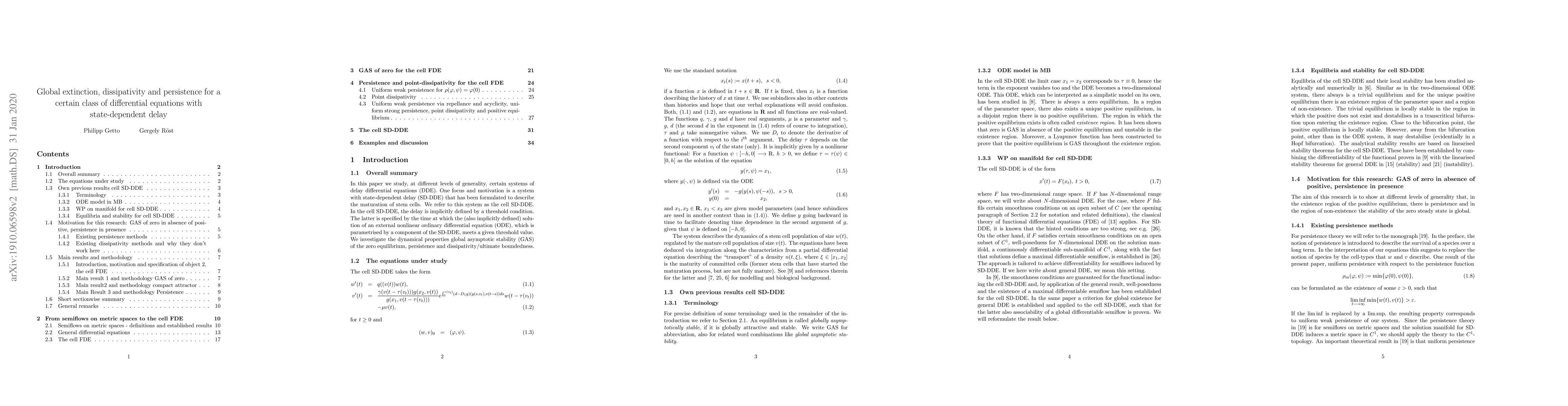 This paper studies the global extinction, persistence, and dissipativity of a class of differential equations with state-dependent delay, focusing on its application to modeling stem cell maturation. The research explores key dynamical properties, including global asymptotic stability and ultimate boundedness.