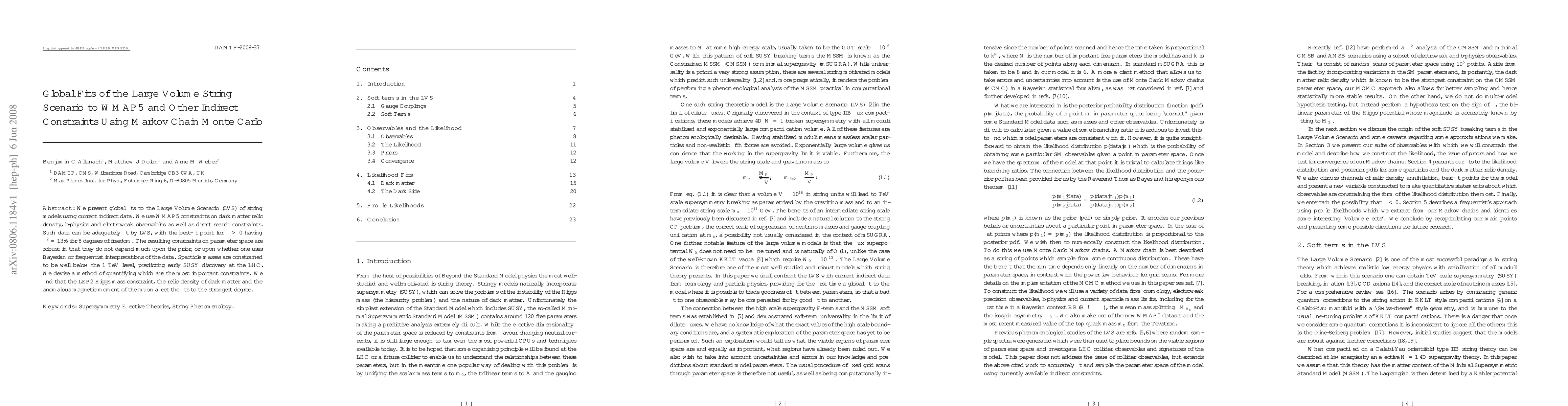 We present global fits to the Large Volume Scenario (LVS) of string models using current indirect data. We use WMAP5 constraints on dark matter relic density, b-physics and electroweak observables as well as direct search constraints. Such data can be adequately fit by LVS, with the best-fit point for mu>0 having chi^2=13.6 for 8 degrees of freedom. The resulting constraints on parameter space are robust in that they do not depend much upon the prior, or upon whether one uses Bayesian or frequentist interpretations of the data. Sparticle masses are constrained to be well below the 1 TeV level, predicting early SUSY discovery at the LHC. We devise a method of quantifying which are the most important constraints. We find that the LEP2 Higgs mass constraint, the relic density of dark matter and the anomalous magnetic moment of the muon affect the fits to the strongest degree.