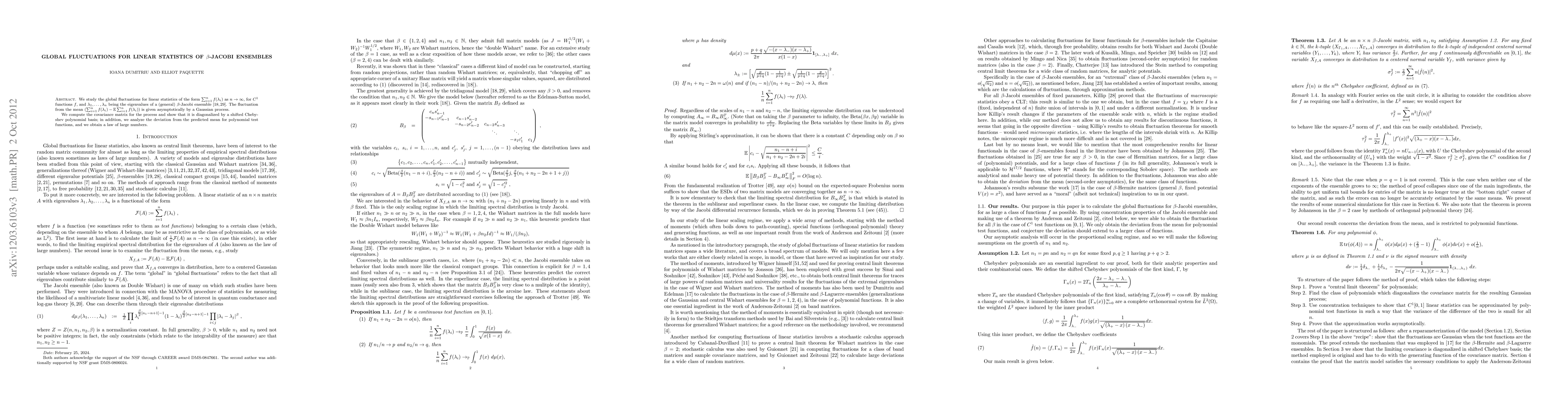 We study the global fluctuations for linear statistics of the form $\sum_{i=1}^n f(\lambda_i)$ as $n \rightarrow \infty$, for $C^1$ functions $f$, and $\lambda_1, ..., \lambda_n$ being the eigenvalues of a (general) $\beta$-Jacobi ensemble, for which tridiagonal models were given by Killip and Nenciu as well as Edelman and Sutton. The fluctuation from the mean ($\sum_{i=1}^n f(\lambda_i) - \Exp \sum_{i=1}^n f(\lambda_i)$) is given asymptotically by a Gaussian process. We compute the covariance matrix for the process and show that it is diagonalized by a shifted Chebyshev polynomial basis; in addition, we analyze the deviation from the predicted mean for polynomial test functions, and we obtain a law of large numbers.