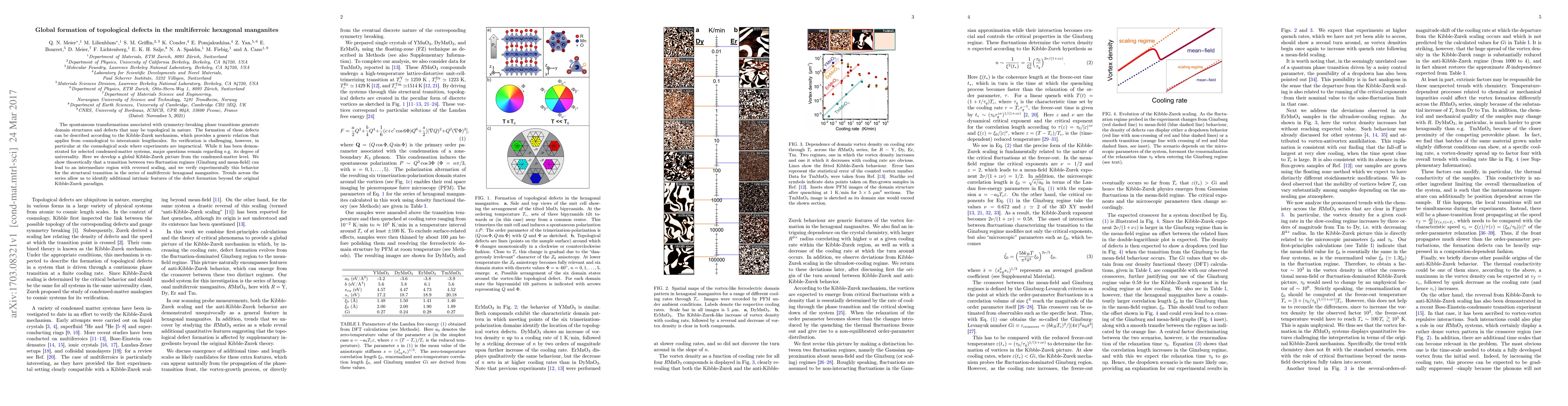This paper develops a global Kibble-Zurek picture to describe the formation of topological defects in multiferroic hexagonal manganites, demonstrating theoretically and experimentally a transition between fluctuation regimes leading to an intermediate region with reversed scaling behavior. The findings reveal additional intrinsic features of defect formation beyond the original Kibble-Zurek paradigm.