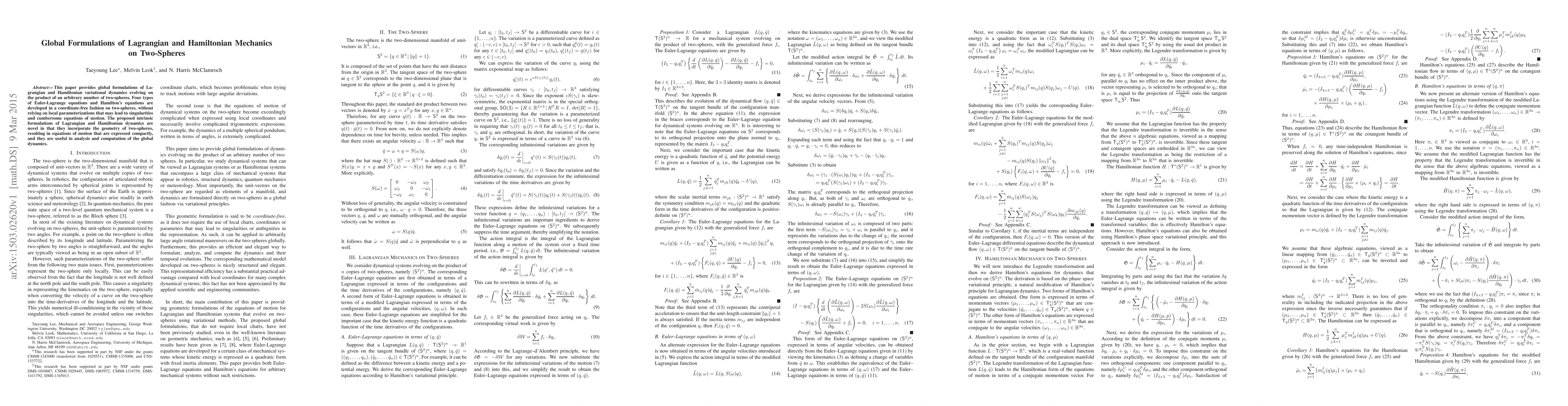 The work presents a unique, coordinate-free approach to Lagrangian and Hamiltonian mechanics on two-spheres, offering compact equations of motion that are advantageous for global dynamics analysis and computation.
