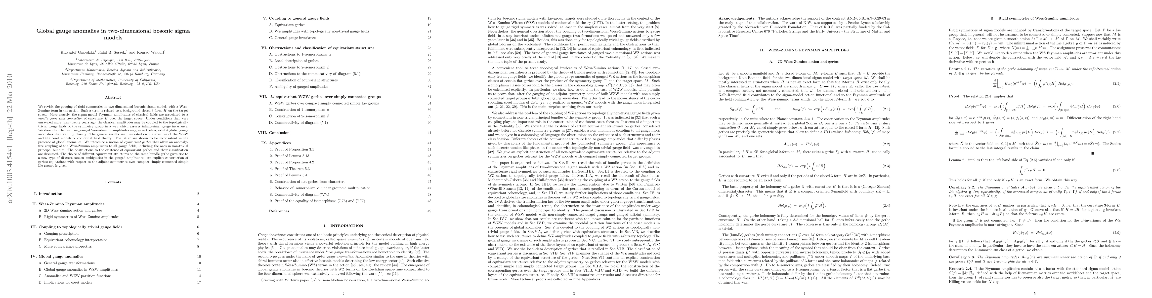 This paper revisits the gauging of symmetries in 2D bosonic sigma models with Wess-Zumino terms, revealing that while classical amplitudes can be coupled to gauge fields, they may still exhibit global gauge anomalies. The authors classify these anomalies and discuss their implications for WZW and coset models, showing that global anomalies render these models inconsistent. They introduce equivariant gerbes to achieve anomaly-free coupling and explore related discrete-torsion ambiguities.