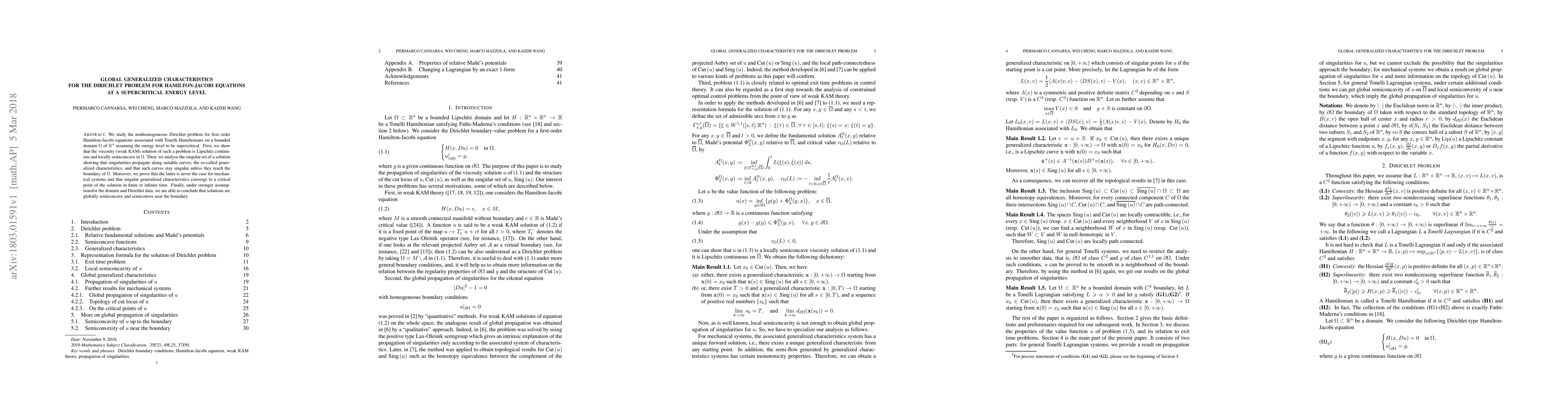 We study the nonhomogeneous Dirichlet problem for first order Hamilton-Jacobi equations associated with Tonelli Hamiltonians on a bounded domain $\Omega$ of $\R^n$ assuming the energy level to be supercritical. First, we show that the viscosity (weak KAM) solution of such a problem is Lipschitz continuous and locally semiconcave in $\Omega$. Then, we analyse the singular set of a solution showing that singularities propagate along suitable curves, the so-called generalized characteristics, and that such curves stay singular unless they reach the boundary of $\Omega$. Moreover, we prove that the latter is never the case for mechanical systems and that singular generalized characteristics converge to a critical point of the solution in finite or infinite time. Finally, under stronger assumptions for the domain and Dirichlet data, we are able to conclude that solutions are globally semiconcave and semiconvex near the boundary.