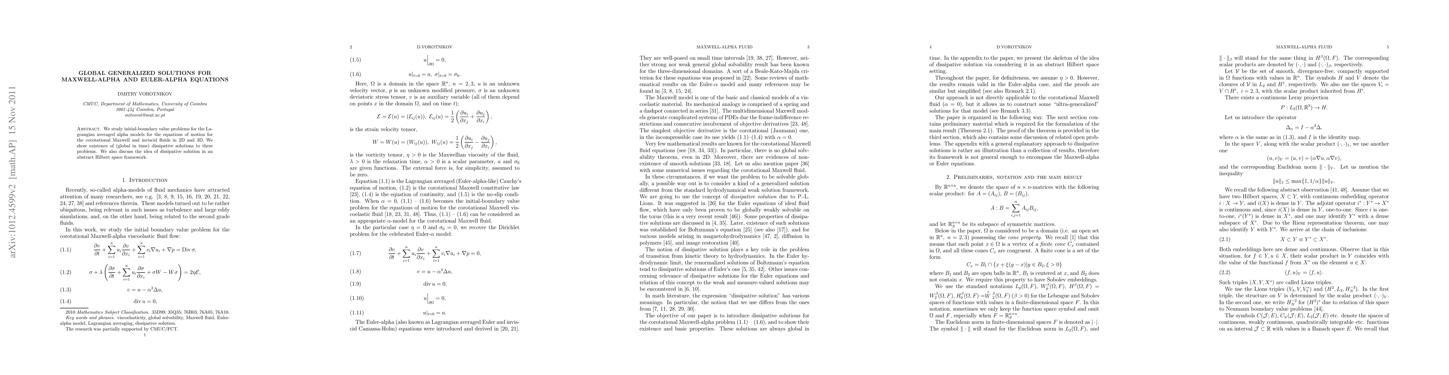 We study initial-boundary value problems for the Lagrangian averaged alpha models for the equations of motion for the corotational Maxwell and inviscid fluids in 2D and 3D. We show existence of (global in time) dissipative solutions to these problems. We also discuss the idea of dissipative solution in an abstract Hilbert space framework.