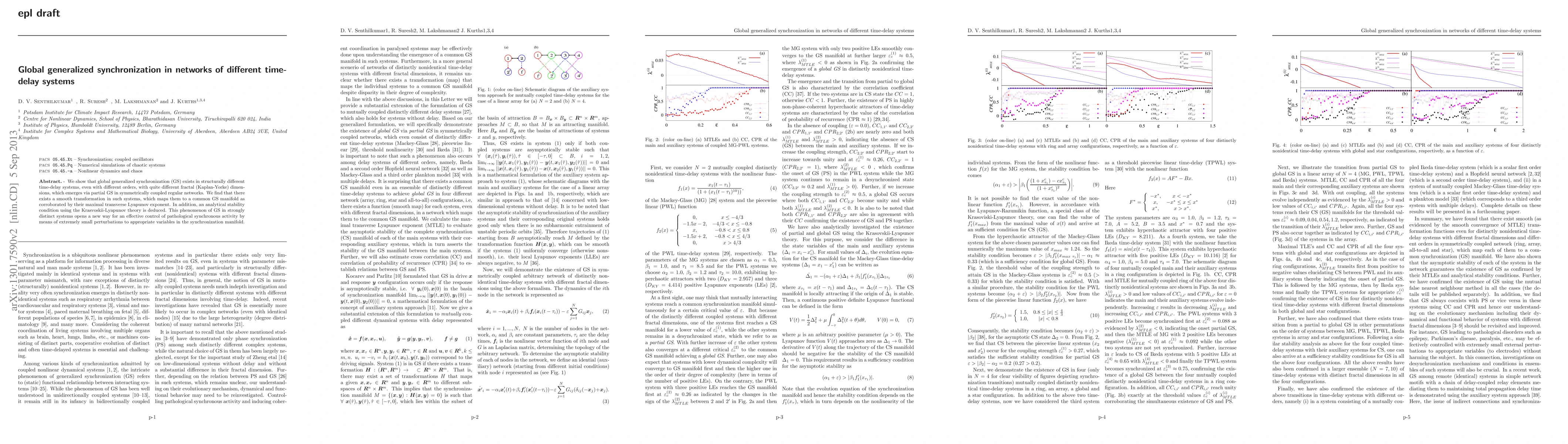 We show that global generalized synchronization (GS) exists in structurally different time-delay systems, even with different orders, with quite different fractal (Kaplan-Yorke) dimensions, which emerges via partial GS in symmetrically coupled regular networks. We find that there exists a smooth transformation in such systems, which maps them to a common GS manifold as corroborated by their maximal transverse Lyapunov exponent. In addition, an analytical stability condition using the Krasvoskii-Lyapunov theory is deduced. This phenomenon of GS in strongly distinct systems opens a new way for an effective control of pathological synchronous activity by means of extremely small perturbations to appropriate variables in the synchronization manifold.