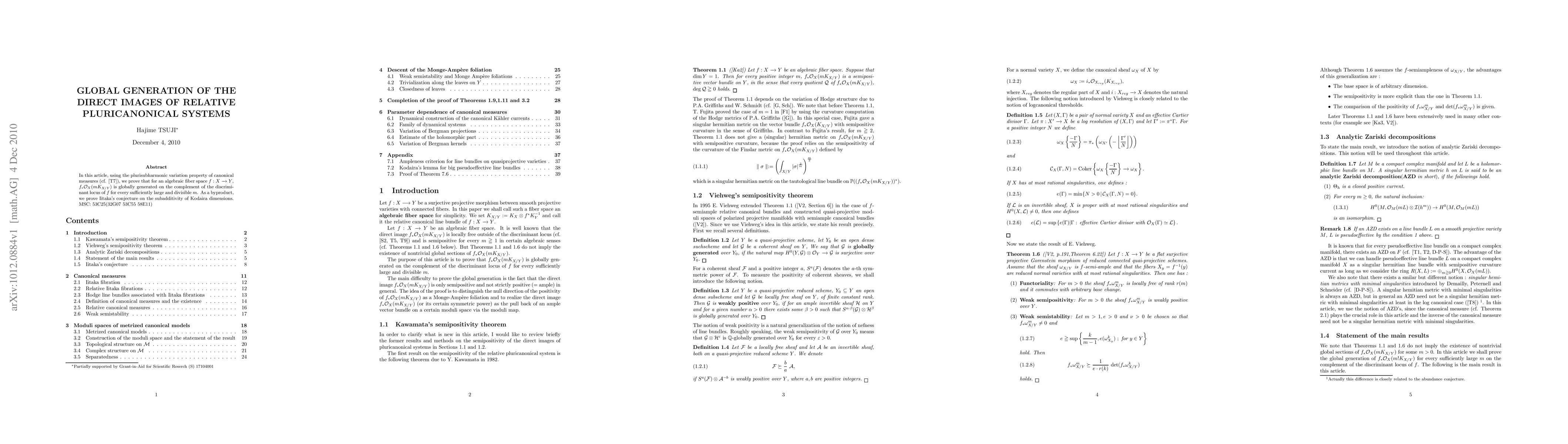 We prove global generation of the direct images of relative pluricanonical systems of sufficiently large and divisible multiples over the complement of the discriminant locus.