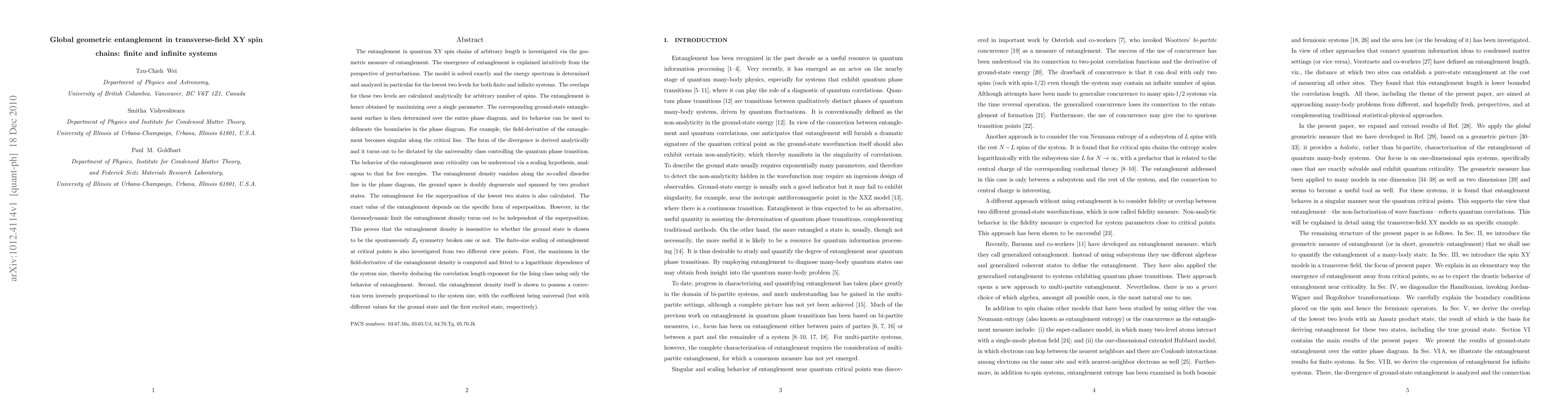 Researchers investigate geometric entanglement in quantum XY spin chains, finding its behavior is linked to universality class controlling phase transition and emerging near criticality.