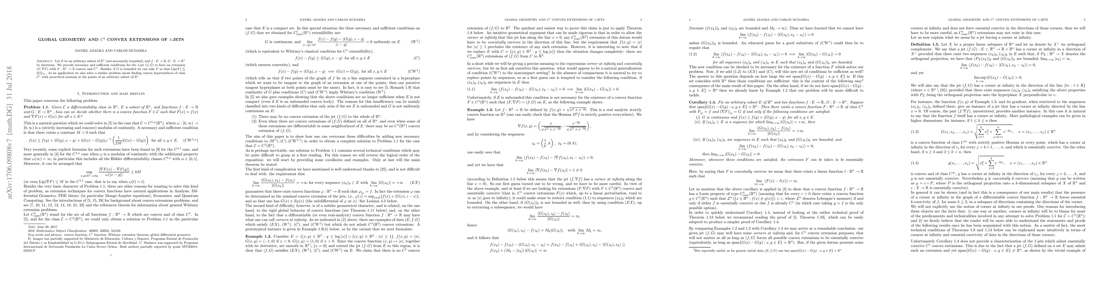 Let $E$ be an arbitrary subset of $\mathbb{R}^n$ (not necessarily bounded), and $f:E\to\mathbb{R}$, $G:E\to\mathbb{R}^n$ be functions. We provide necessary and sufficient conditions for the $1$-jet $(f,G)$ to have an extension $(F, \nabla F)$ with $F:\mathbb{R}^n\to\mathbb{R}$ convex and of class $C^{1}$. Besides, if $G$ is bounded we can take $F$ so that $\textrm{Lip}(F)\lesssim \|G\|_{\infty}$. As an application we also solve a similar problem about finding convex hypersurfaces of class $C^1$ with prescribed normals at the points of an arbitrary subset of $\mathbb{R}^n$.