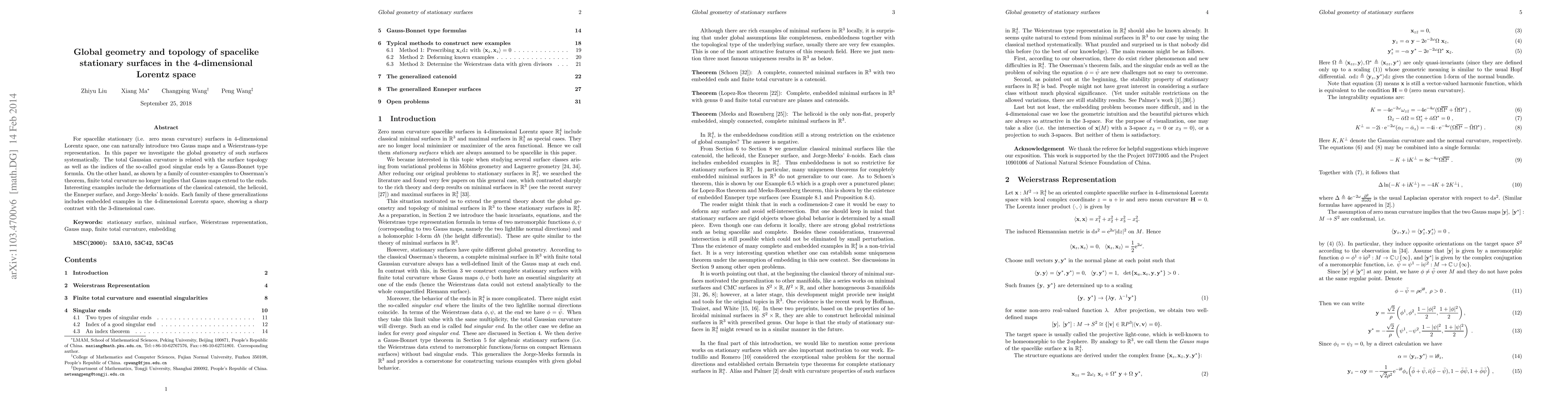 This paper explores the global geometry and topology of spacelike stationary surfaces in 4-dimensional Lorentz space, revealing connections between total Gaussian curvature and surface topology via a generalized Jorge-Meeks formula. It also demonstrates that finite total curvature does not guarantee the extension of Gauss maps to the ends, illustrated by counterexamples.