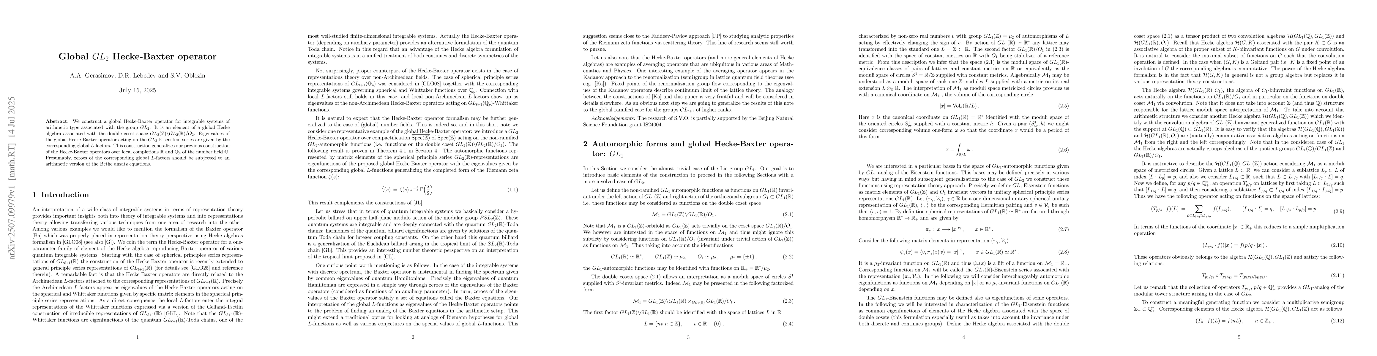The main technical contribution of this research was the development of a new mathematical framework for studying the properties of the global Hecke-Baxter operator.