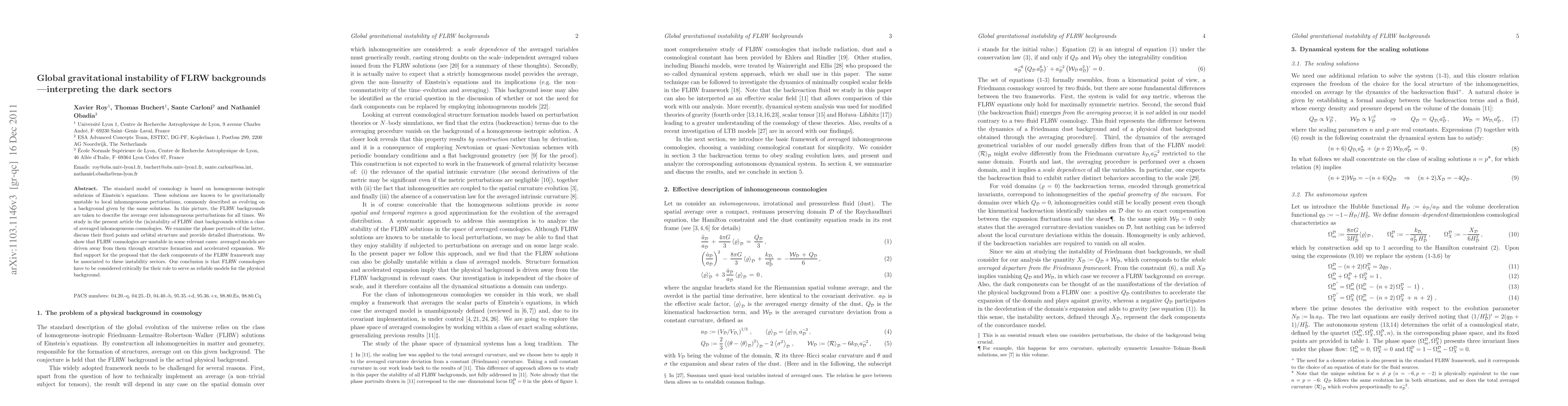 New research questions the stability of the standard cosmology model, suggesting that FLRW backgrounds may not accurately describe reality due to gravitational instability. This could imply that dark sectors in the universe play a key role in its structure.