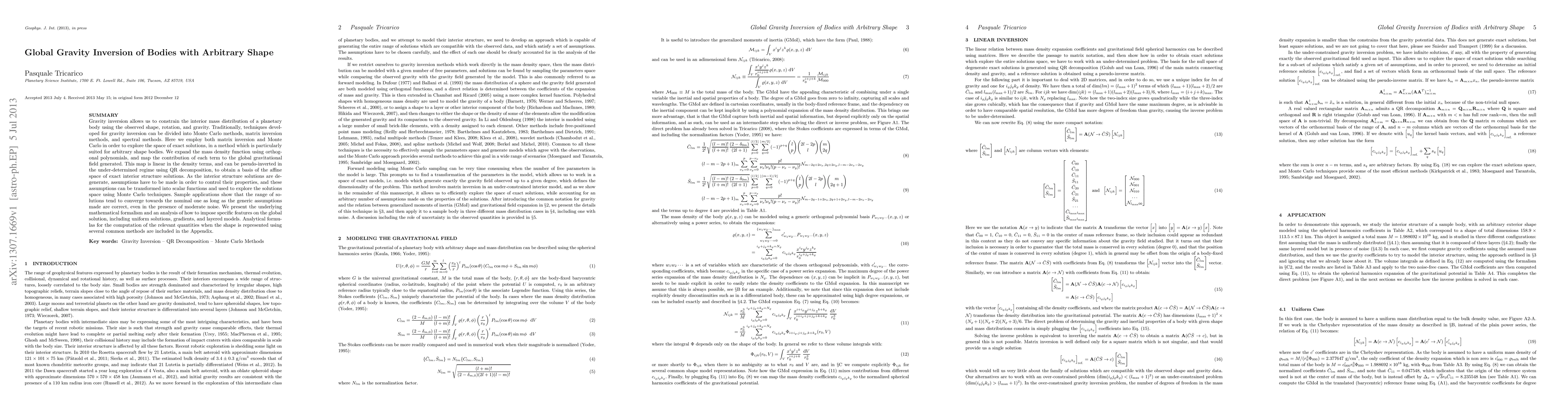 This paper introduces a method for gravity inversion of bodies with arbitrary shape, using both matrix inversion and Monte Carlo methods to explore the space of exact solutions. It provides analytical formulas and analysis tools for imposed features on the global solution.