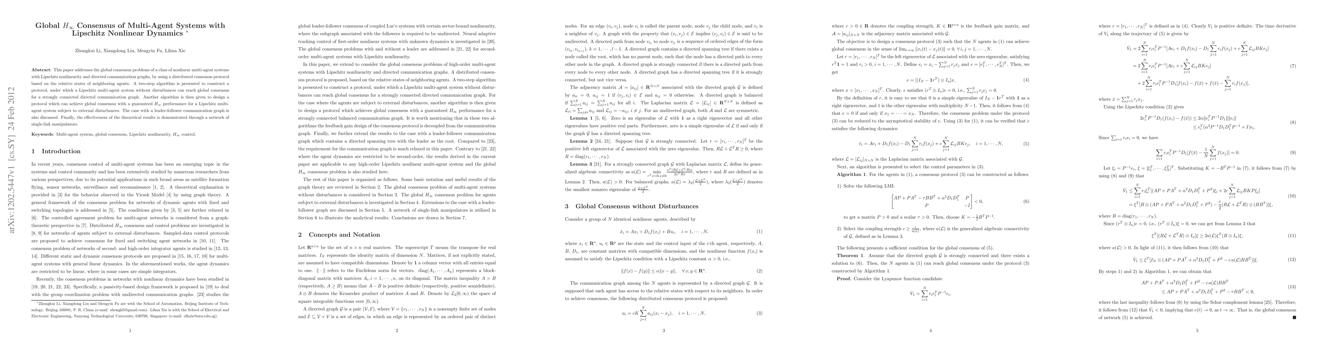 This paper addresses the global consensus problems of a class of nonlinear multi-agent systems with Lipschitz nonlinearity and directed communication graphs, by using a distributed consensus protocol based on the relative states of neighboring agents. A two-step algorithm is presented to construct a protocol, under which a Lipschitz multi-agent system without disturbances can reach global consensus for a strongly connected directed communication graph. Another algorithm is then given to design a protocol which can achieve global consensus with a guaranteed $H_\infty$ performance for a Lipschitz multiagent system subject to external disturbances. The case with a leader-follower communication graph is also discussed. Finally, the effectiveness of the theoretical results is demonstrated through a network of single-link manipulators.