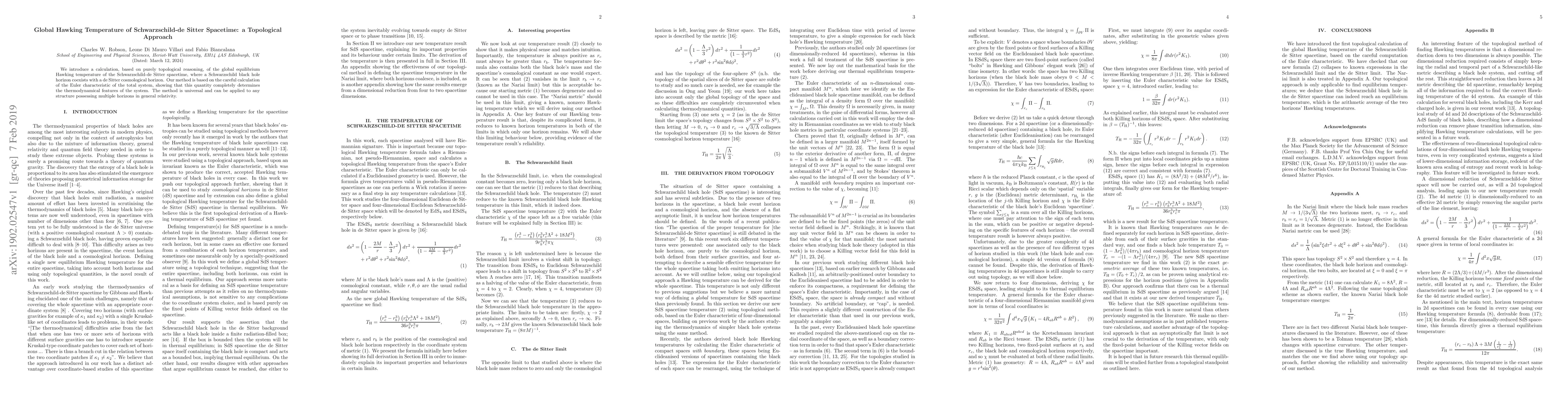This paper calculates the global Hawking temperature of Schwarzschild-de Sitter spacetime using topological methods, demonstrating that the Euler characteristic determines the thermodynamic features of the system, and highlighting the universality of the approach for multiple horizon structures in general relativity.