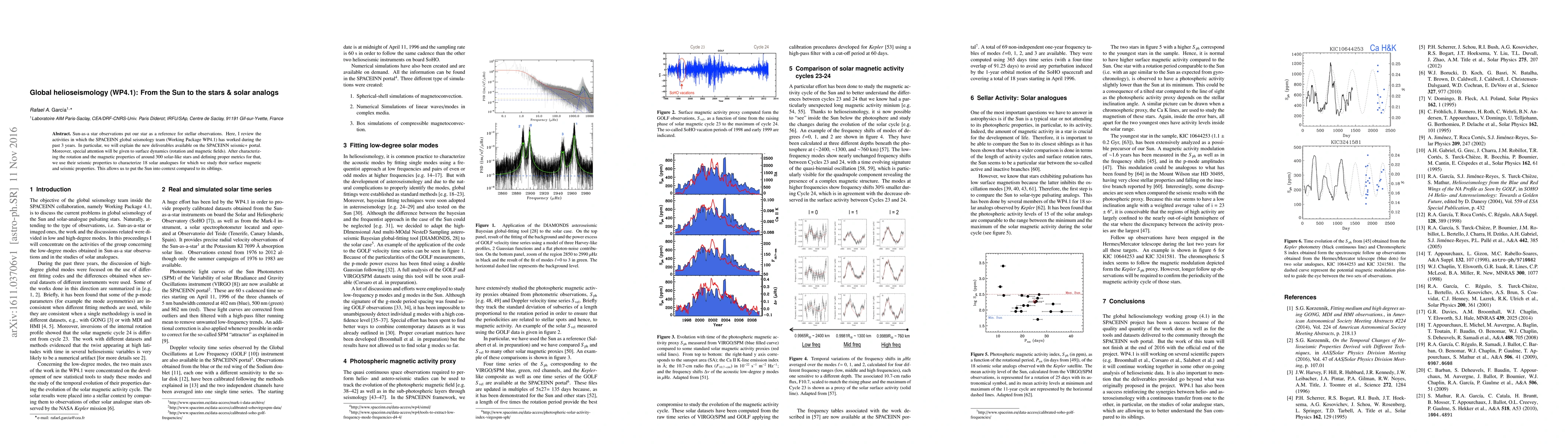 Sun-as-a star observations put our star as a reference for stellar observations. Here, I review the activities in which the SPACEINN global seismology team (Working Package WP4.1) has worked during the past 3 years. In particular, we will explain the new deliverables available on the SPACEINN seismic+ portal. Moreover, special attention will be given to surface dynamics (rotation and magnetic fields). After characterizing the rotation and the magnetic properties of around 300 solar-like stars and defining proper metrics for that, we use their seismic properties to characterize 18 solar analogues for which we study their surface magnetic and seismic properties. This allows us to put the Sun into context compared to its siblings.