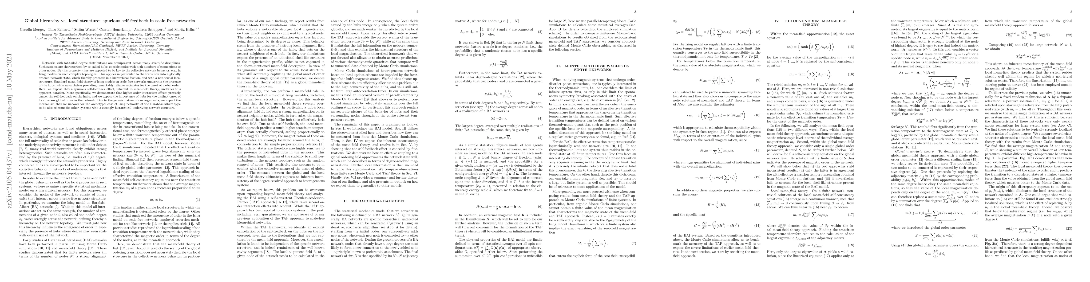Networks with fat-tailed degree distributions are omnipresent across many scientific disciplines. Such systems are characterized by so-called hubs, specific nodes with high numbers of connections to other nodes. By this property, they are expected to be key to the collective network behavior, e.g., in Ising models on such complex topologies. This applies in particular to the transition into a globally ordered network state, which thereby proceeds in a hierarchical fashion, and with a non-trivial local structure. Standard mean-field theory of Ising models on scale-free networks underrates the presence of the hubs, while nevertheless providing remarkably reliable estimates for the onset of global order. Here, we expose that a spurious self-feedback effect, inherent to mean-field theory, underlies this apparent paradox. More specifically, we demonstrate that higher order interaction effects precisely cancel the self-feedback on the hubs, and we expose the importance of hubs for the distinct onset of local versus global order in the network. Due to the generic nature of our arguments, we expect the mechanism that we uncover for the archetypal case of Ising networks of the Barab\'asi-Albert type to be also relevant for other systems with a strongly hierarchical underlying network structure.
