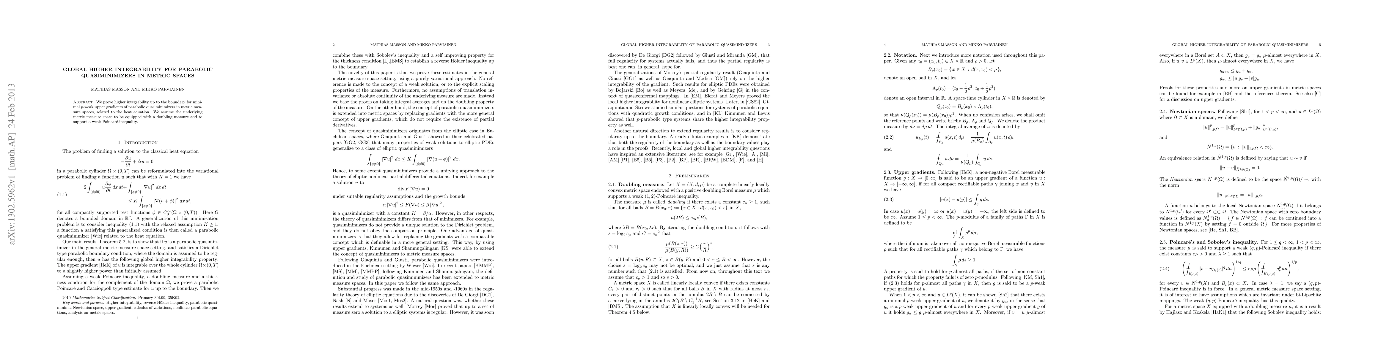 Summary: The paper establishes higher integrability for minimal p-weak upper gradients of parabolic quasiminimizers in metric measure spaces, proving they are integrable up to the boundary, under the conditions of a doubling measure and weak Poincaré inequality.