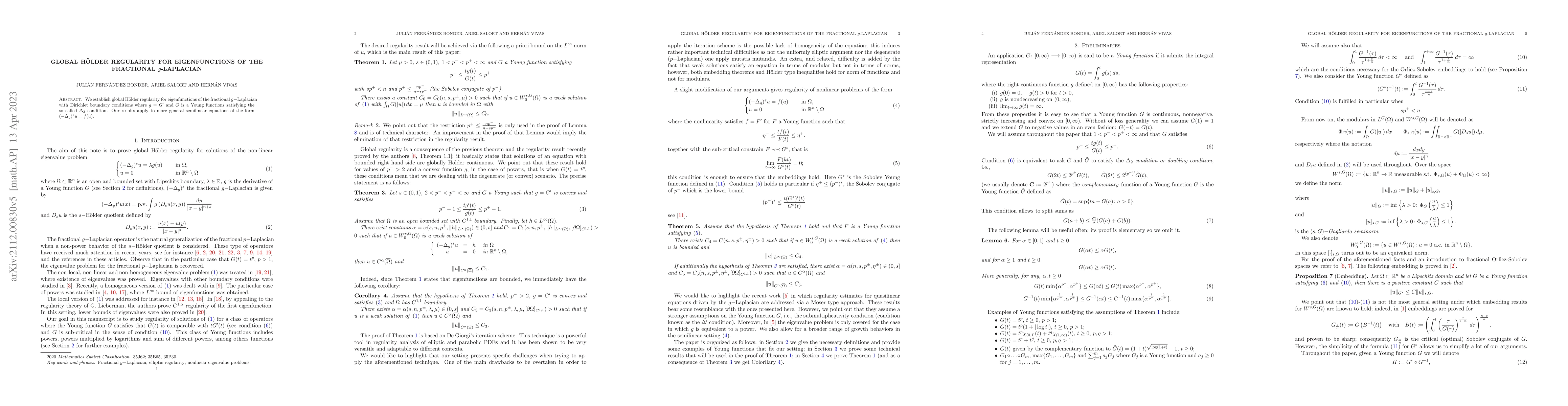 This paper proves global H\"older regularity for eigenfunctions of the fractional $g$-Laplacian under Dirichlet boundary conditions, where $g=G'$ and $G$ meets the $\Delta_2$ condition. The findings extend to semilinear equations of the form $(-\Delta_g)^s u = f(u)$.