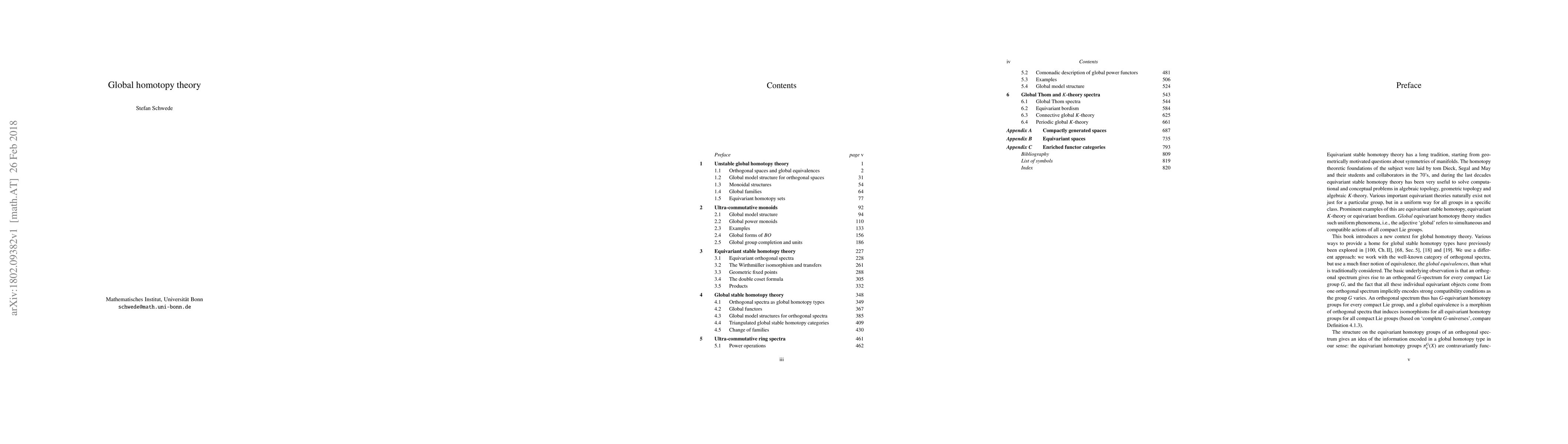 This book introduces global equivariant homotopy theory, focusing on uniform phenomena across all compact Lie groups, with applications to stable homotopy, $K$-theory, and bordism. It covers unstable and stable global homotopy theory, including model structures and detailed examples.
