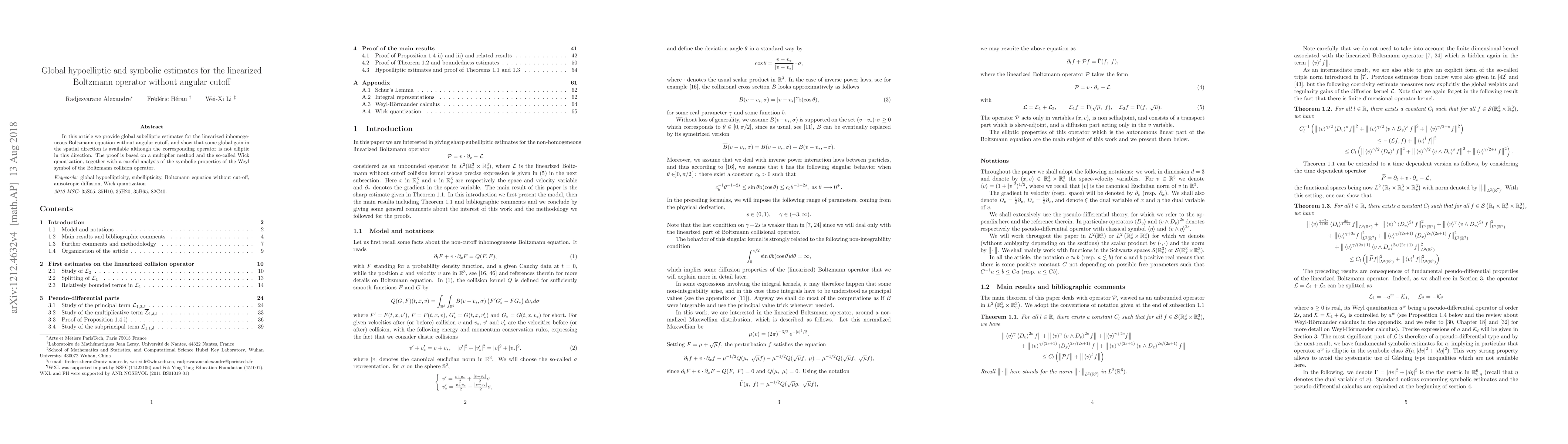 This paper presents global subelliptic estimates for the linearized inhomogeneous Boltzmann equation without angular cutoff, demonstrating spatial direction gains despite the operator's non-elliptic nature. The proof utilizes a multiplier method, Wick quantization, and an analysis of the Boltzmann collision operator's Weyl symbol properties.