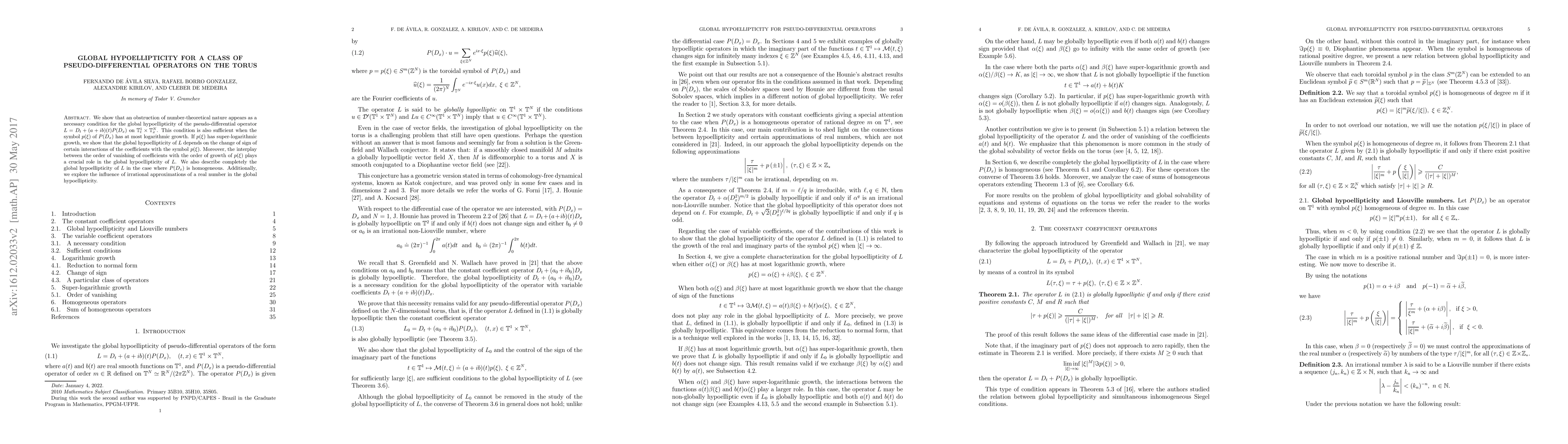 This paper investigates the global hypoellipticity of a pseudo-differential operator on the torus, revealing a number-theoretical obstruction as a necessary condition. It also demonstrates sufficient conditions under logarithmic growth of the symbol and explores the interplay between coefficient orders and symbol growth.