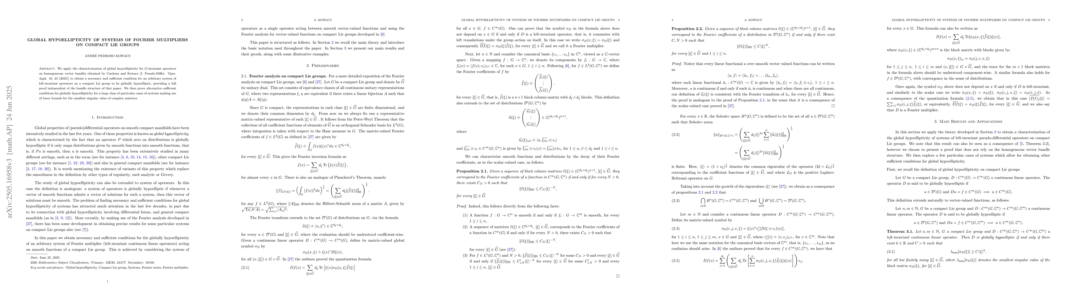 The paper provides a comprehensive proof of global hypoellipticity for systems of Fourier multipliers on compact Lie groups, extending previous work by Cardona and Kowacs.